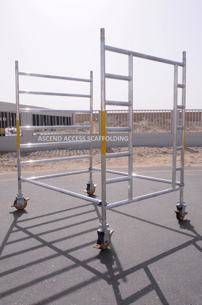 ASCEND ACCESS SCAFFOLDING LLC?established in the year 2006 manufactures and sells all types of Movable Aluminium Scaffolding, Industrial and DIY (Do It Yourself) Ladders. With a keen eye for safety, durability and simplicity ASCEND now is continually expanding its range to maintain as leading designer, manufacturer and supplier of access equipment. As a leader in this industry with its largest inventory in the business, the company is well positioned with compelling unique offers and services that are not limited to local and export sales, customization, engineering and alteration. All these translate the ability to meet and tailor to a variety of different needs and to adapt at any time. Factory is equipped with state of the art machineries with latest, updated technology fully precision and automatic machines mostly from Italy and France. The complete automation of our production department makes it possible to maintain premier quality standard which is an essential characteristics of our company. The products are developed by sincere professionals with experience and expertise, people who understand what the customer's need, to work at height, safely and comfortably. Naturally, always keeping in mind the basic requirements of the existing standards and regulations. As a trusted company in this growing market, ASCEND has dedicated itself to build a respectable brand that is known for its fast delivery time, uncompromising product quality, competitive price positioning and the drive to shoot for excellence. Ascend towers are ideal for indoor and outdoor access solutions where a stable and secure platform is required. These towers provide strong working platform at various heights. The towers are supplied ready to erect. Our scaffolding towers are constructed out of strong aluminium alloy tubes (extruded to British standard).